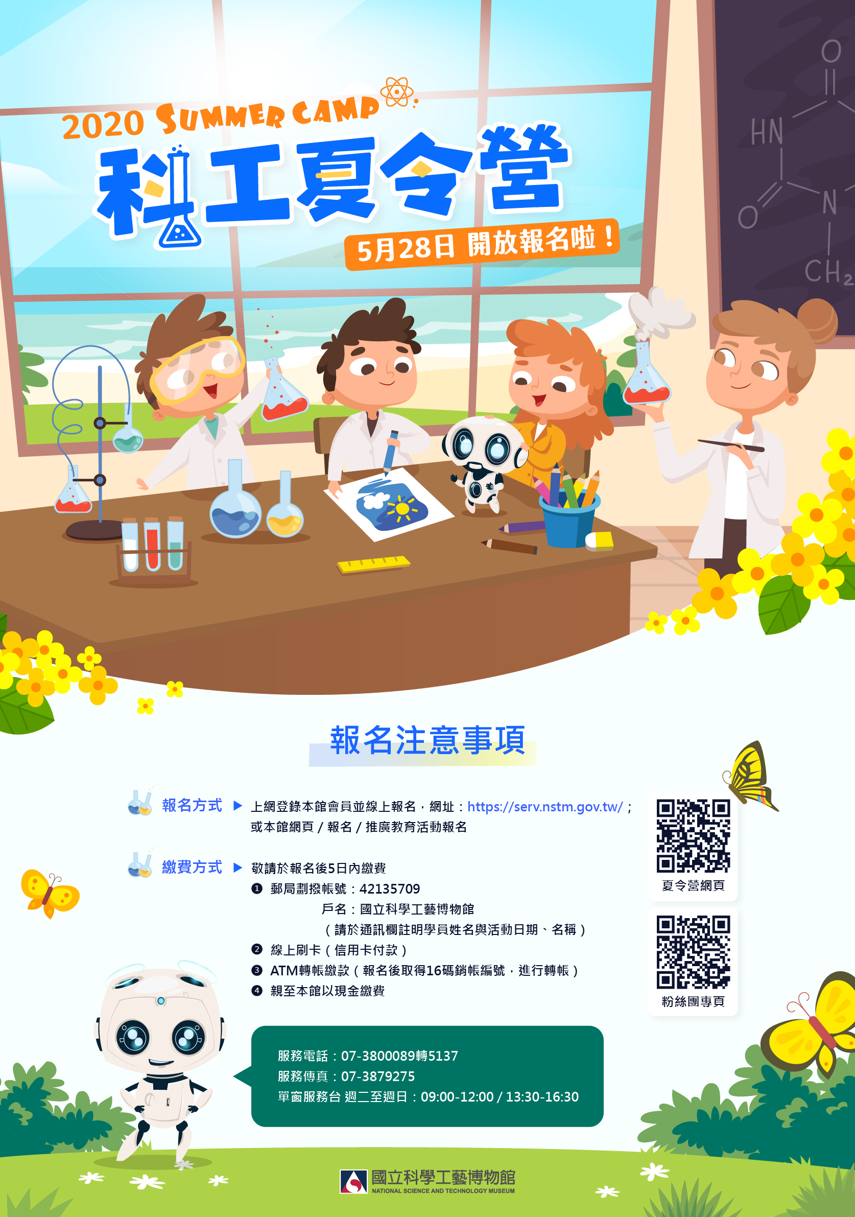 二、活動主題包含14大類,近百場科學營隊,活動精彩多元,讓學生於暑假期間學習更加充實,歡迎報名參加,詳情請參看活動專屬網站:https://education.nstm.gov.tw/summercamp/。