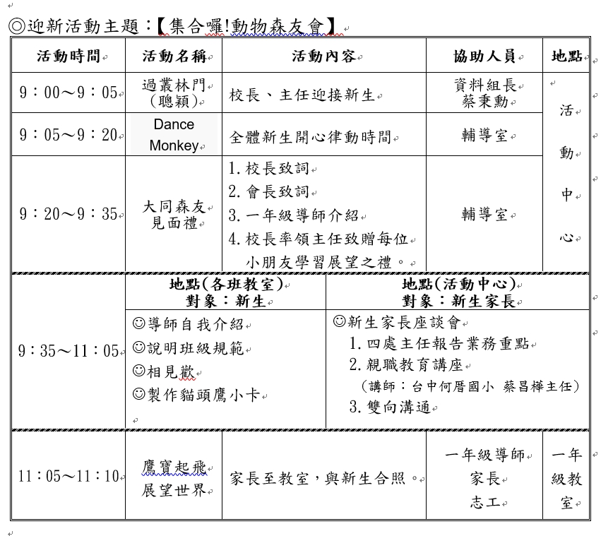 8/28(五)上午9:00-11:10的迎新活動,請您注意以下事項