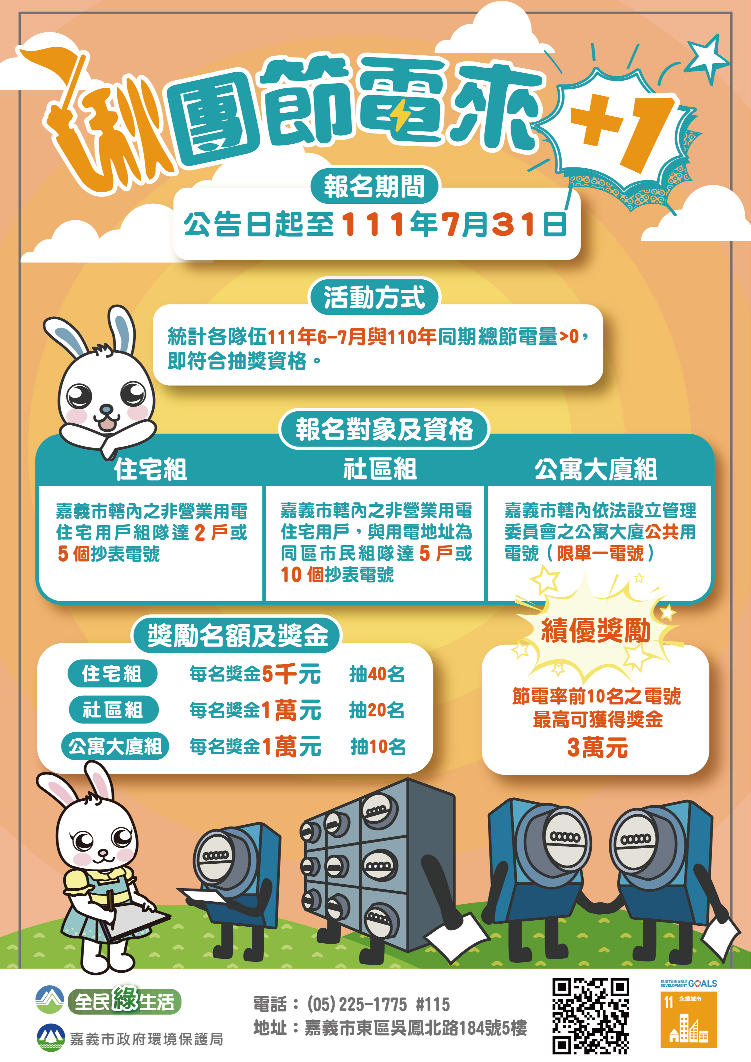 嘉義市政府環境保護局局辦理「揪團節電來+1」節電競賽活動,請協助推廣,鼓勵報名參加。