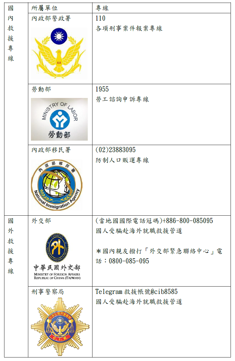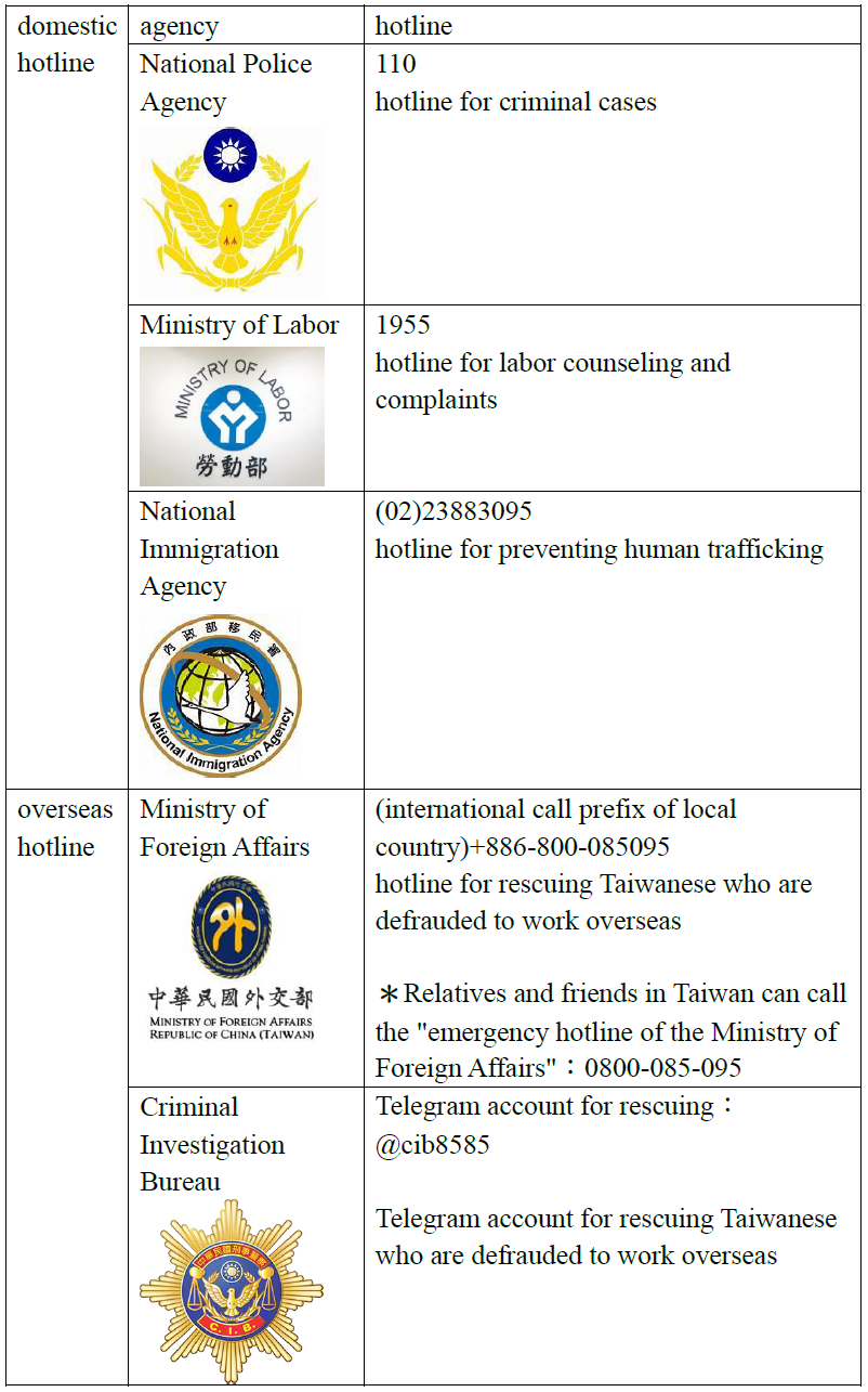 一、什麼是人口販運? 基於剝削意圖或故意,符合不法手段及不法作為要件者: (一)不法手段:以強暴、脅迫、恐嚇、拘禁、監控、藥劑、催眠術、詐 術、故意隱瞞重要資訊、不當債務約束、扣留重要文件、利用他人不 能、不知或難以求助之處境,或其他相類之方法。但對未滿十八歲之 人從事人口販運,不以符合不法手段為必要。 (二)不法作為: 1. 從事招募、買賣、質押、運送、交付、收受、藏匿、隱避、媒介、 容留國內外人口。 2. 使他人從事有對價之性交或猥褻行為。 3. 使人為奴隸或類似奴隸、強迫勞動、從事勞動與報酬顯不相當之工 作或實行依我國法律有刑罰規定之行為。 4. 摘取他人器官。 二、什麼是人口販運罪? 人口販運罪:指從事人口販運,而犯本法、刑法、勞動基準法、兒童及少 年性剝削防制條例、人體器官移植條例或其他相關之罪。 三、人口販運罪的刑事處罰責任? (一)人口販運防制法第 29 條 1、利用不當債務約束或他人不能、不知或難以求助之處境,使人從事 有對價之性交或猥褻行為者,處六月以上五年以下有期徒刑,得併 科新臺幣三百萬元以下罰金。 2、意圖營利犯前項之罪者,處一年以上七年以下有期徒刑,得併科新 臺幣五百萬元以下罰金。 3、前二項之未遂犯罰之。 (二)人口販運防制法第 30 條 1. 以強暴、脅迫、恐嚇、拘禁、監控、藥劑、詐術、催眠術或其他相 類之方法,使人提供勞務者,處五年以下有期徒刑,得併科新臺幣 三百萬元以下罰金。 2. 意圖營利犯前項之罪者,處一年以上七年以下有期徒刑,得併科新 臺幣五百萬元以下罰金。 3. 前二項之未遂犯罰之。 (三)人口販運防制法第 31 條 1. 以強暴、脅迫、恐嚇、拘禁、監控、藥劑、詐術、催眠術或其他相 類之方法,使人從事勞動與報酬顯不相當之工作或實行依我國法律 有刑罰規定之行為者,處一年以上七年以下有期徒刑,得併科新臺 幣五百萬元以下罰金。 2. 利用不當債務約束、他人不能、不知或難以求助之處境、扣留重要 身分證明文件,使人從事勞動與報酬顯不相當之工作或實行依我國 法律有刑罰規定之行為者,處三年以下有期徒刑,得併科新臺幣一 百萬元以下罰金。 3. 利用未滿十八歲之人,使之從事勞動與報酬顯不相當之工作或實行 依我國法律有刑罰規定之行為者,處一年以上七年以下有期徒刑, 得併科新臺幣五百萬元以下罰金。 4. 意圖營利犯前三項之罪,依下列規定處罰: (1)犯第一項或前項之罪者,處三年以上十年以下有期徒刑,得併 科新臺幣七百萬元以下罰金。 (2)犯第二項之罪者,處一年以上七年以下有期徒刑,得併科新臺 幣五百萬元以下罰金。 5. 前四項之未遂犯罰之。 (四)人口販運防制法第 32 條 1. 以強暴、脅迫、恐嚇、拘禁、監控、藥劑、詐術、催眠術或其他相 類之方法,摘取他人器官者,處七年以上有期徒刑,得併科新臺幣 一千萬元以下罰金。 2. 利用不當債務約束或他人不能、不知或難以求助之處境,摘取他人 器官者,處五年以上十二年以下有期徒刑,得併科新臺幣八百萬元 以下罰金。 3. 對未滿十八歲之人摘取其器官者,處七年以上有期徒刑,得併科新 臺幣一千萬元以下罰金。 4. 意圖營利犯前三項之罪,依下列規定處罰: (1)犯第一項或前項之罪者,處十年以上有期徒刑,得併科新臺幣 一千二百萬元以下罰金。 (2)犯第二項之罪者,處七年以上有期徒刑,得併科新臺幣一千萬 元以下罰金。 5. 前四項之未遂犯罰之。 (五)人口販運防制法第 33 條 1. 意圖剝削,以強暴、脅迫、恐嚇、拘禁、監控、藥劑、催眠術、詐 術、不當債務約束、利用他人不能、不知或難以求助之處境或其他 相類之方法而對他人從事招募、買賣、質押、運送、交付、收受、 藏匿、隱避、媒介、容留者,處五年以下有期徒刑,得併科新臺幣 三百萬元以下罰金。 2. 意圖剝削,對未滿十八歲之人從事招募、買賣、質押、運送、交 付、收受、藏匿、隱避、媒介、容留者,處七年以下有期徒刑,得 併科新臺幣五百萬元以下罰金。 3. 前二項之未遂犯罰之。 (六)人口販運防制法第 34 條 1. 犯第二十九條第一項、第三十條第一項、第三十一條第二項或第三 十三條第一項之罪,因而致人於死者,處無期徒刑或七年以上有期 徒刑,得併科新臺幣一千萬元以下罰金;致重傷者,處三年以上十 年以下有期徒刑,得併科新臺幣七百萬元以下罰金。 2. 犯第二十九條第二項、第三十條第二項、第三十一條第一項、第三 項、第四項或第三十三條第二項之罪,因而致人於死者,處無期徒 刑或十年以上有期徒刑,得併科新臺幣一千二百萬元以下罰金;致 重傷者,處五年以上十二年以下有期徒刑,得併科新臺幣八百萬元 以下罰金。 3. 犯第三十二條第一項至第四項之罪,因而致人於死者,處無期徒刑 或十二年以上有期徒刑,得併科新臺幣一千五百萬元以下罰金;致 重傷者,處十年以上有期徒刑,得併科新臺幣一千二百萬元以下罰 金。 (七)其他有關涉及刑法、勞動基準法、兒童及少年性剝削防制條例、人體 器官移植條例或其他相關法律規定之刑事處罰責任,參照各該法律規 定。 四、你該如何協助疑似人口販運被害人? 當你發現身邊有人疑似受到前述情形,不要猶豫,請立即撥打國內專線或 國外專線及 Telegram 救援帳號,由以上各機關(單位)來協助鑑別。